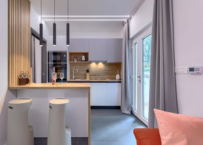 The apartment is situated 4.7 km from Poreč Zelena Laguna and within 2 km of the Porec Old Town. The Romanesque House is within 30 minutes' walk of the property. Guests can easily reach Spadići Materada Beach 450 metres away.